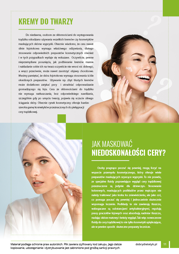 Dieta opracowana przez zespół specjalistów dietetyki klinicznej z przeznaczeniem dla osób zmagających się z problemami skóry trądzikowej. W przygotowanym programie dietetycznym zwrócono uwagę na obniżenie indeksu glikemicznego, zwiększenie podaży kwasów omega-3, odpowiednią ilość białka oraz potrzebnych witamin i minerałów wspomagających leczenie cery trądzikowej. Celem diety jest ograniczenie składników działających prozapalnie i pobudzających nadmierne wydzielanie sebum.